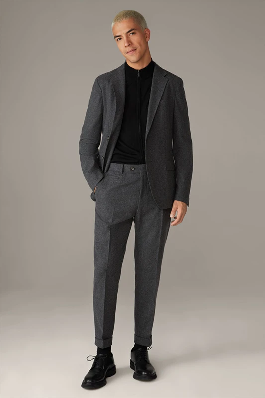 Ikonischer Look klassisch interpretiert: Der Anzug Acon-Luc ergänzt die maskuline Formalwear mit eleganter Lässigkeit. Pattentaschen am Sakko und die Hose mit fixiertem Saumumschlag statuieren ein neues Styling-Niveau.
