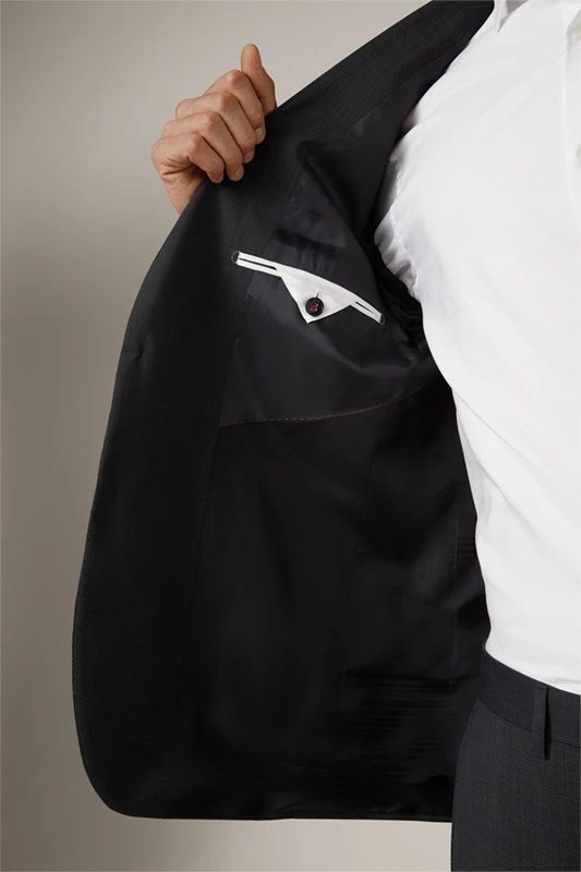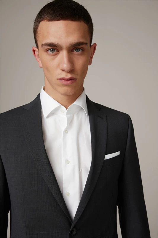 Der luxuriöse Anzug Rick-Jans aus reiner Schurwolle begeistert mit leichtem Tragekomfort und klassischen Details. Moderner Regular Fit mit Reverskragen, Pattentaschen und Anzughose mit Business-Schließe.