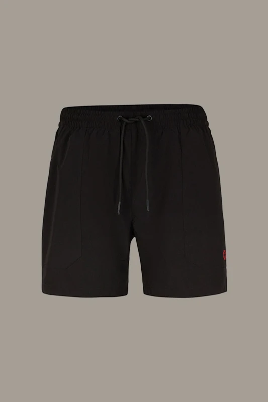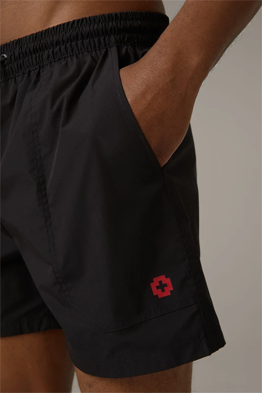 Funktionaler Beachwear-Style: Badeshorts Liam mit elastischem Tunnelzugbund, applizierten Taschen und leichtem Mesh-Inlay.