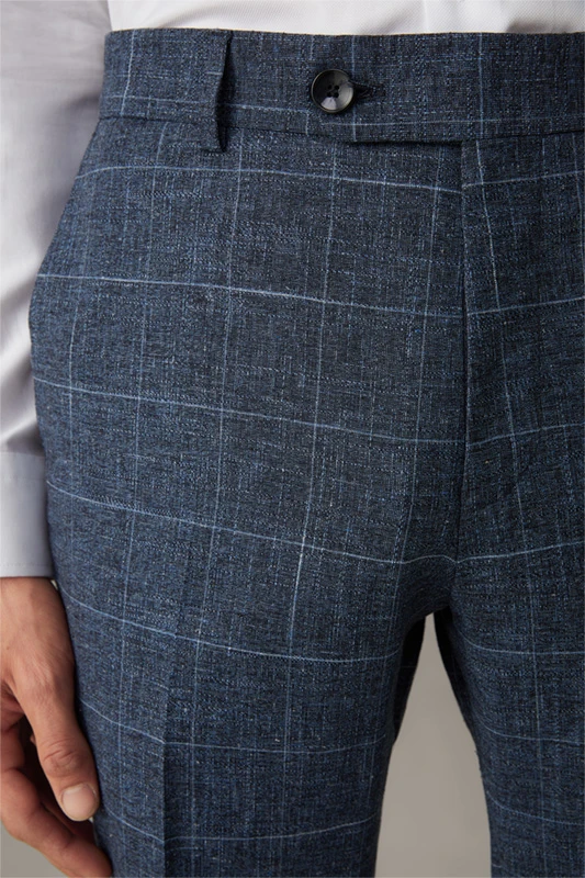 Die Baukasten-Anzughose Mace komplettiert im karierten Wool-Blend und im schmalen Schnitt den Business-Look. Mit Bügelfalten und knöpfbaren Paspelgesäßtaschen für extra Eleganz.