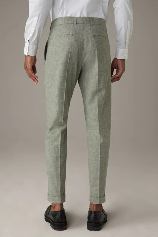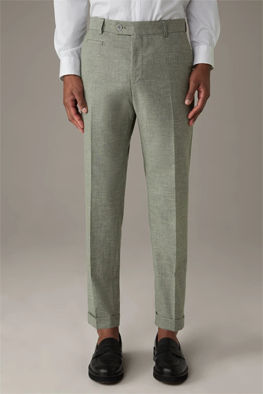 Klassischen Styles verleiht die Baukasten-Hose Luc im RELAXED FIT und mit fixiertem Umschlag ein Update. Der Wool-Blend mit Leinen sorgt für die moderne Optik und das Komfort-Finish.