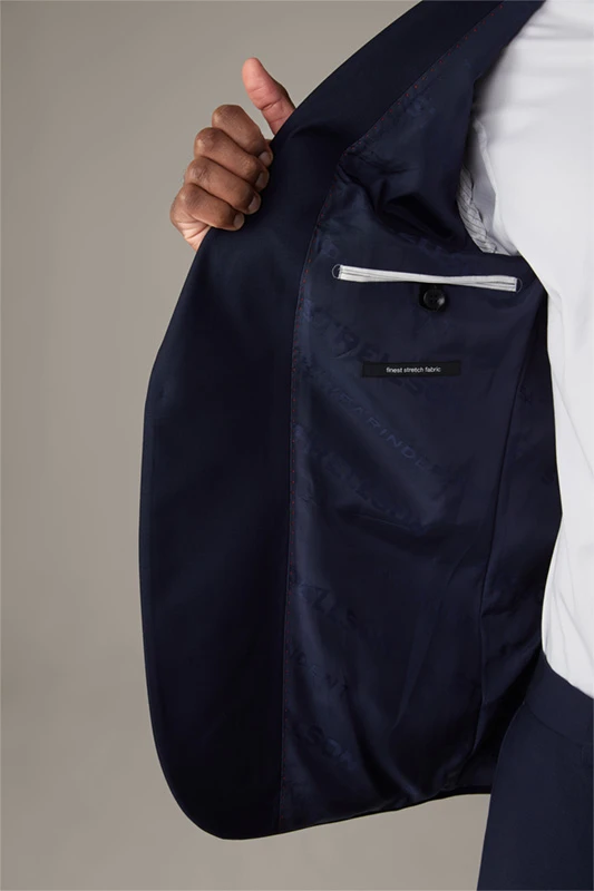 Finest stretch fabric: das Sakko Amur im Wool-Blend mit Reverskragen und Paspeltaschen. Easy to go dank Einreiher-Design mit einem Knopf.
