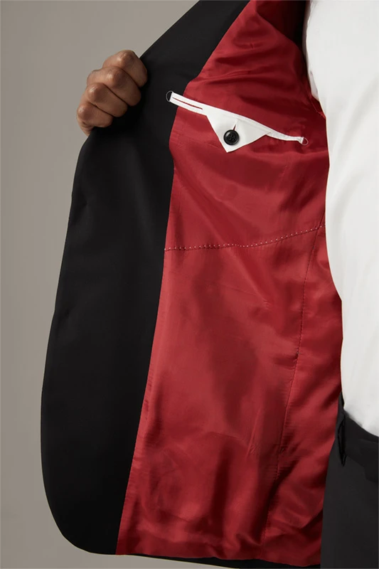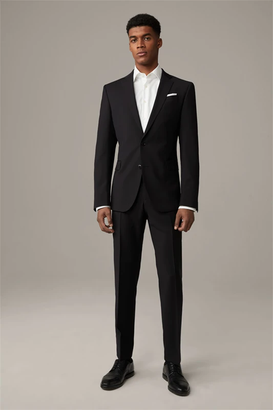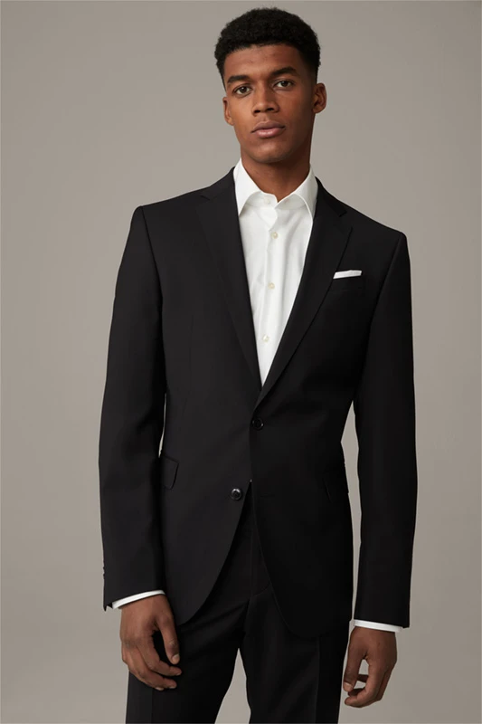 Aus luxuriöser Schurwolle überzeugt das Sakko Rick mit natürlichem Super 100’s Stretch in italienischer Qualität. Paspelierte Pattentaschen setzten einen edlen Akzent – in Kombination mit der Anzughose Jansein stilvoller Business-Look.