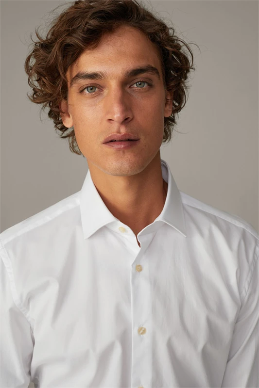 Das pure Baumwoll-Hemd Santos ist ein vielseitiges Business-Essential in klassischer Optik. Ein verstärkter Kentkragen und die glatte Knopfleiste definieren den taillierte SLIM FIT.