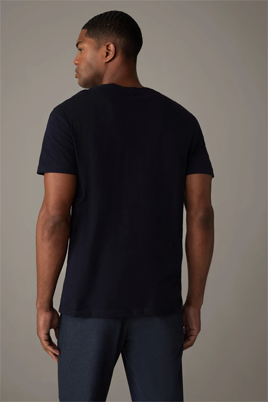 Mit V-Ausschnitt, kurzen Ärmeln und geradem Saum setzt das leicht strukturierte T-Shirt Colin aus purer Baumwolle neue Basic-Statements.