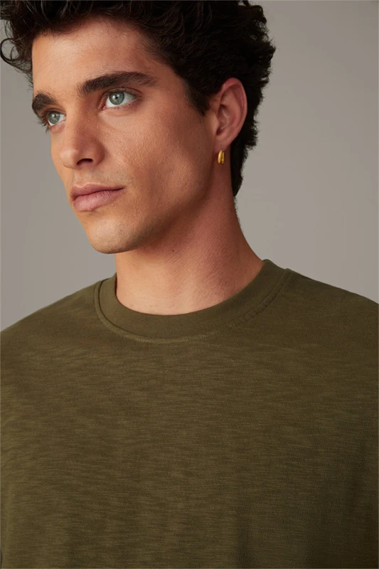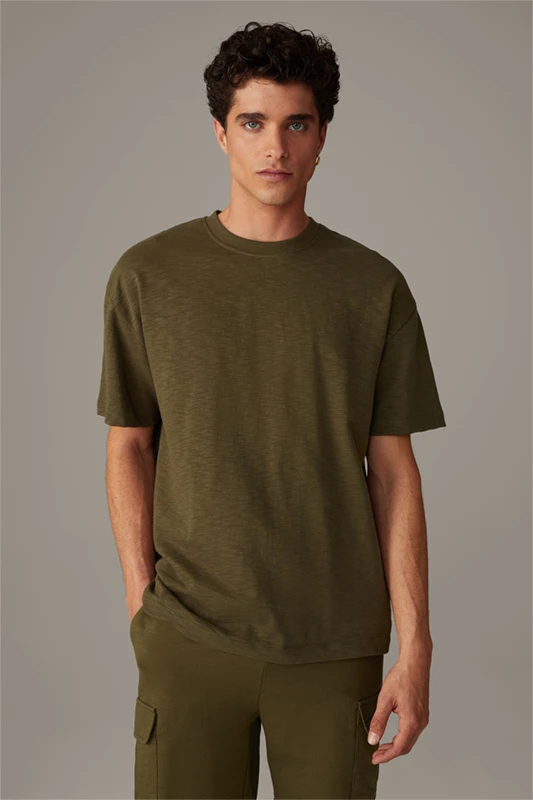 Legeres T-Shirt mit lockerer Passform, Rundhalsausschnitt und überschnittenen Schultern. In kompakter Baumwoll-Qualität bietet der Style angenehmen Komfort und lässt sich einzeln oder als Layering tragen.