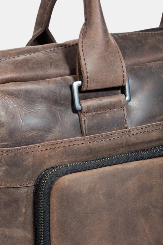 Briefcase Richmond in Vintage-Braun aus gefettetem Rindsleder mit außergewöhnlichem Pull-up Effekt.