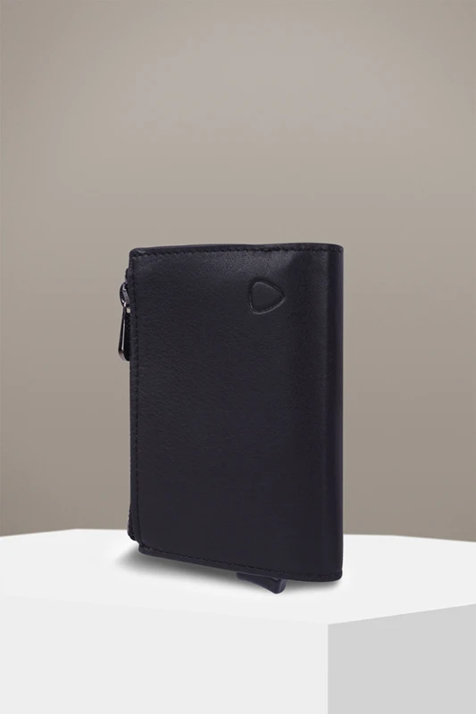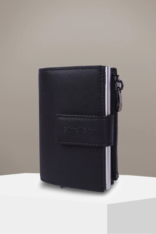Smart und stilvoll: das E-Cage-Karten-Etui C-Four Carter aus edlem Glattleder mit Aluminium-Case für maximalen RFID-Schutz. Diverse Kartenfächer und ein Schein- sowie Münzfach ergänzen das praktikable Accessoire.