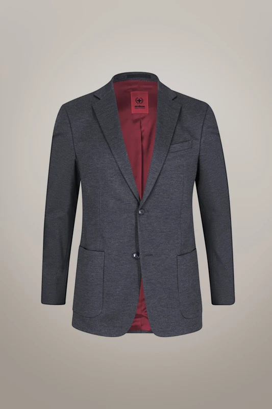 Die luxuriöse Jersey-Stretch-Qualität zeichnet das Sakko Arndt der Serie Flex Cross als variables Dresscode-Essential aus, akzentuiert mit modernen Eingrifftaschen – passend zur schmalen Hose Saturn.