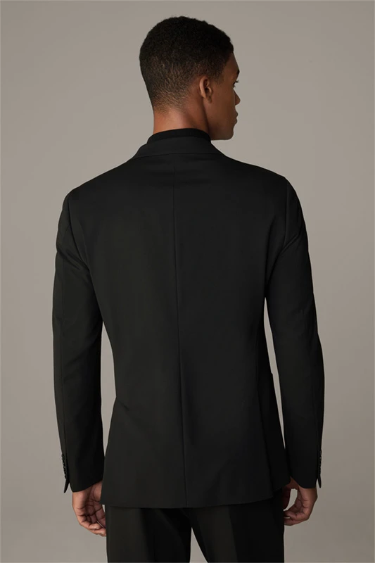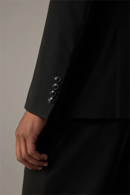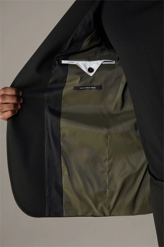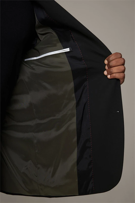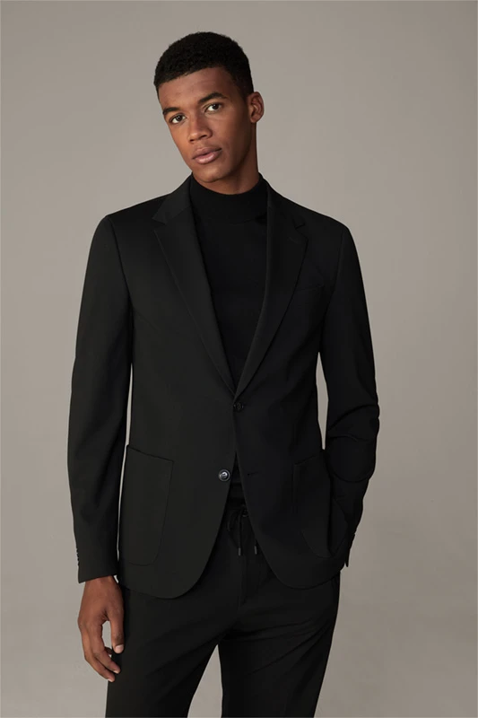 Die luxuriöse Jersey-Stretch-Qualität zeichnet das Sakko Arndt der Serie Flex Cross als variables Dresscode-Essential aus, akzentuiert mit modernen Eingrifftaschen – passend zur schmalenHose Saturn.