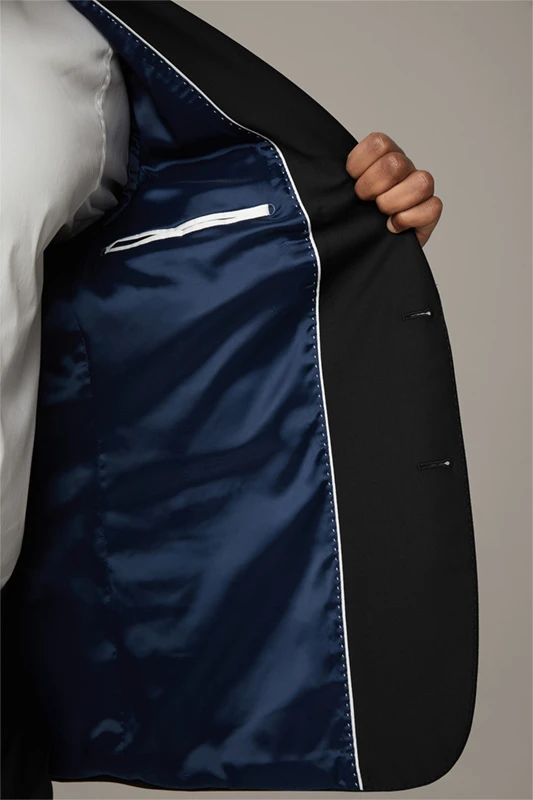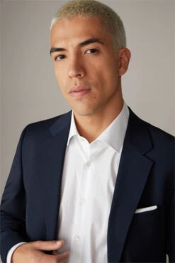In schmaler Silhouette überzeugt das Sakko Allen AMF aus einem hochwertigen Schurwoll-Stretch-Mix. Dezente Stitching-Details setzen moderne Akzente. Kombinieren Sie als Anzug-Variante die passende Hose Mercer und Weste Ves.Â