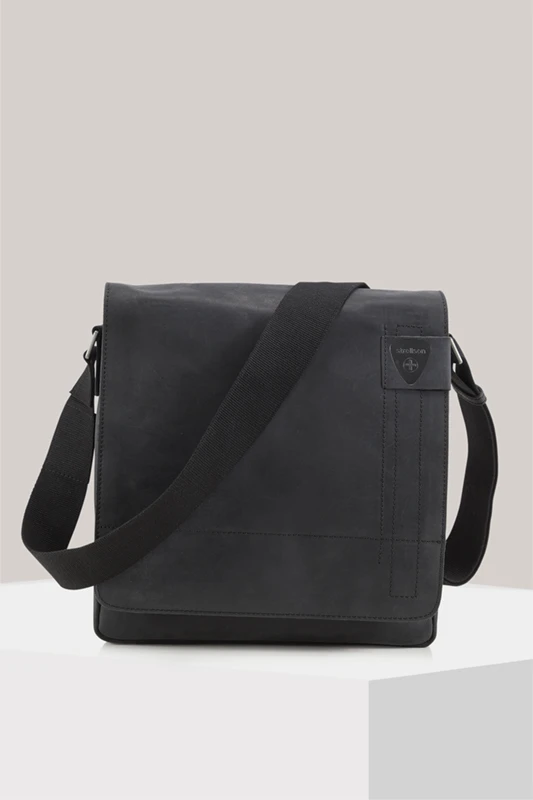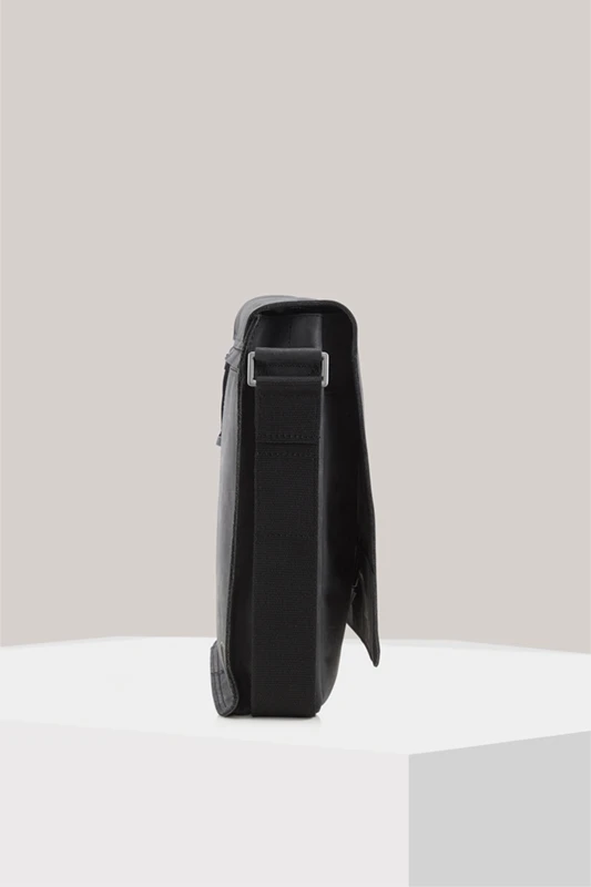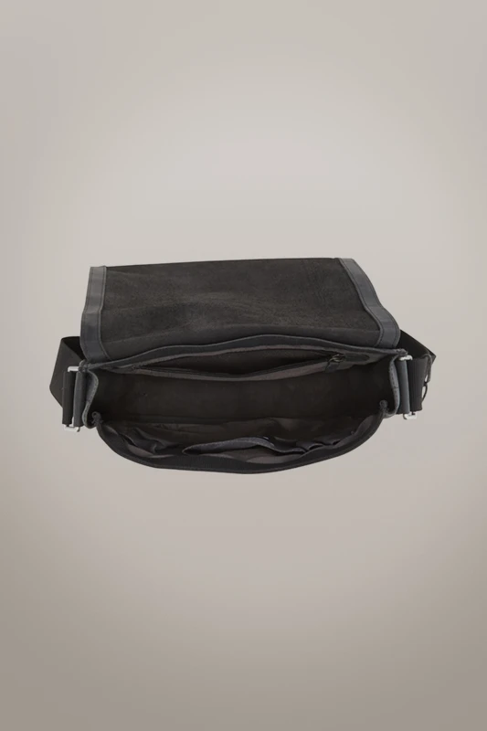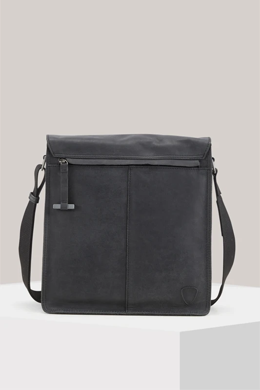 Kleine Messenger Bag Richmond in lässigem Vintage-Schwarz bietet Platz für Tablet, Handy und Co. Mit Reisverschlussfach auf der Rückseite.