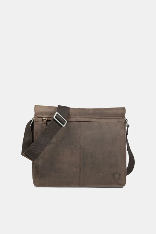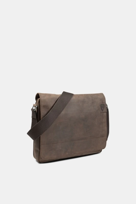 Messenger Bag Richmond in warmem Vintage-Braun. Mit geräumigem Innenfach das viel Platz für iPad oder Laptop bietet und einem gut gepolsterten Extra-Platz.