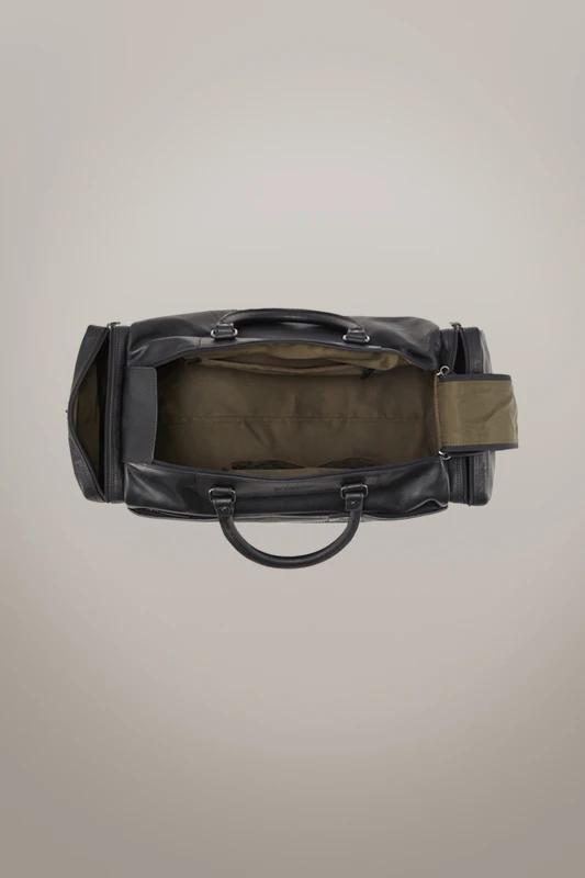 Stilvolles Reise-Accessoire mit Vintage-Charakter – die geräumige Reisetasche Hyde Park aus genarbtem Echtleder zeigt sich in klassischem Design mit diversen Taschen und dezenten Glanz-Details. Tragevarianten optional in der Hand oder über der Schulter.
