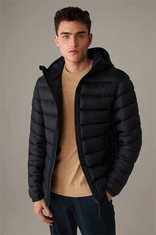 Wärmendes Upgrade für den Look: die Steppjacke S.C. Modica aus Nylon mit leichter Füllung aus recyceltem Tech-Material, langem Zipper und elastischen Ärmelbündchen. Ergänzt durch die verstellbare Kapuze.