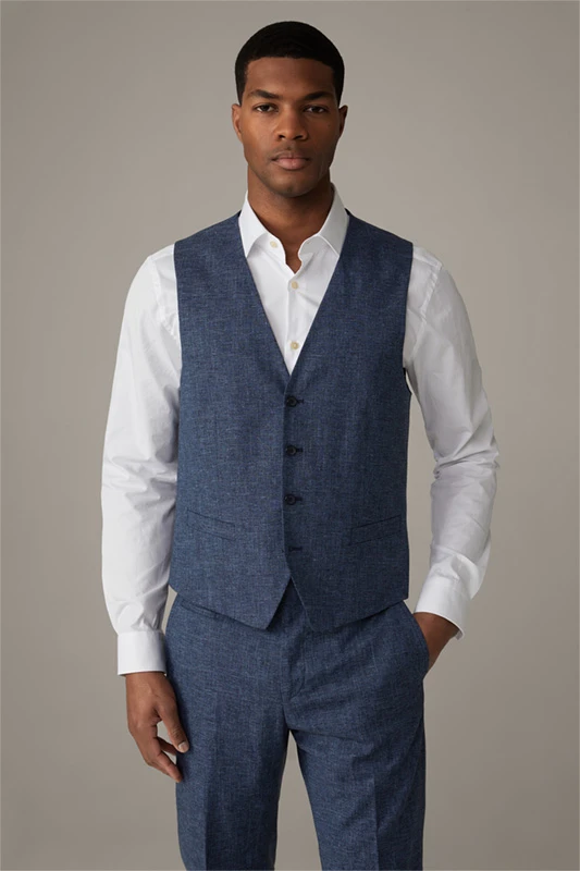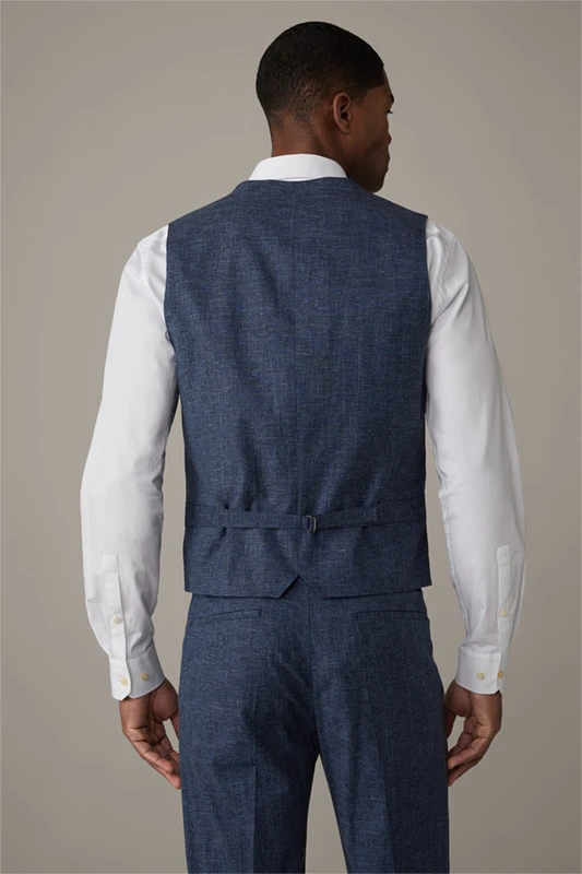 Perfektes Kombi-Piece für den Business-Auftritt: die Weste Gyl mit V-Ausschnitt, Knopfleiste und Leistentaschen. Im stretchigen Baumwoll-Woll-Viskose-Leinen-Mix für ein Komfort-Upgrade.